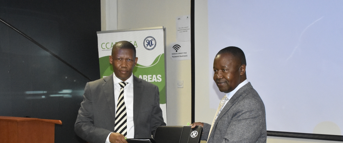 Dr Baitsi Podisi, the Comprehensive Africa Agriculture Development Programme Coordinator, on behalf of the CCARDESA Executive Director, shared the institution's regional mandate. He highlighted the CCARDESA thematic areas and ongoing projects as key purveyors through which CCARDESA discharges its mandate. Dr Podisi expressed happiness for this important event, which will go down in the history of CCARDESA as an unforgettable event to seal a partnership that will hopefully withstand the test of time and harness the strengths of the two institutions to bring out good benefits for the SADC region.