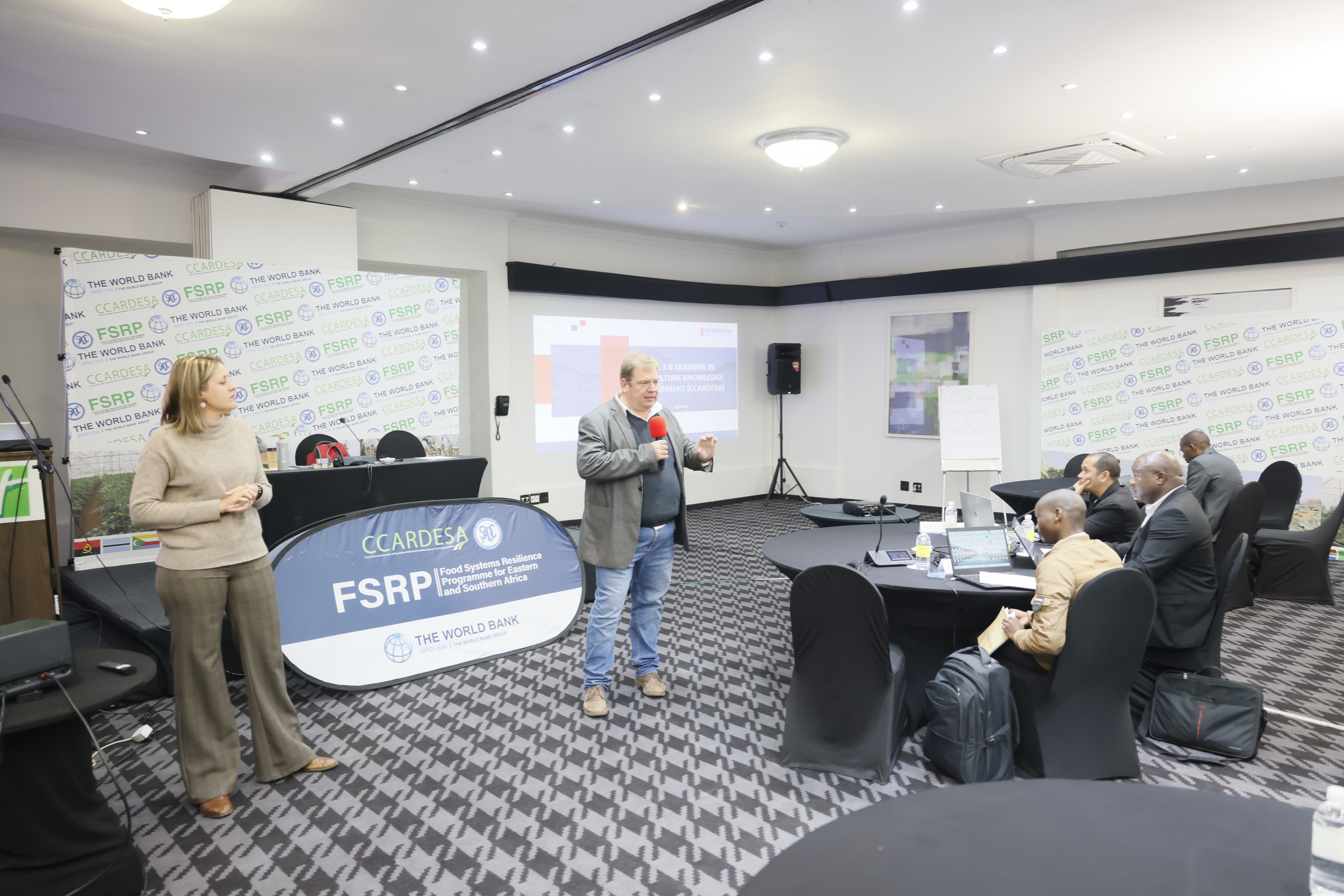 Held under the Food Systems Resilience Programme (FSRP) — a World Bank-supported multi-country initiative—the training convened more than 30 participants, including Information, Communication and Knowledge Management (ICKM) focal points from across SADC member states, and M&E and communications experts from FSRP-implementing countries (Malawi, Madagascar, Comoros, and Tanzania).