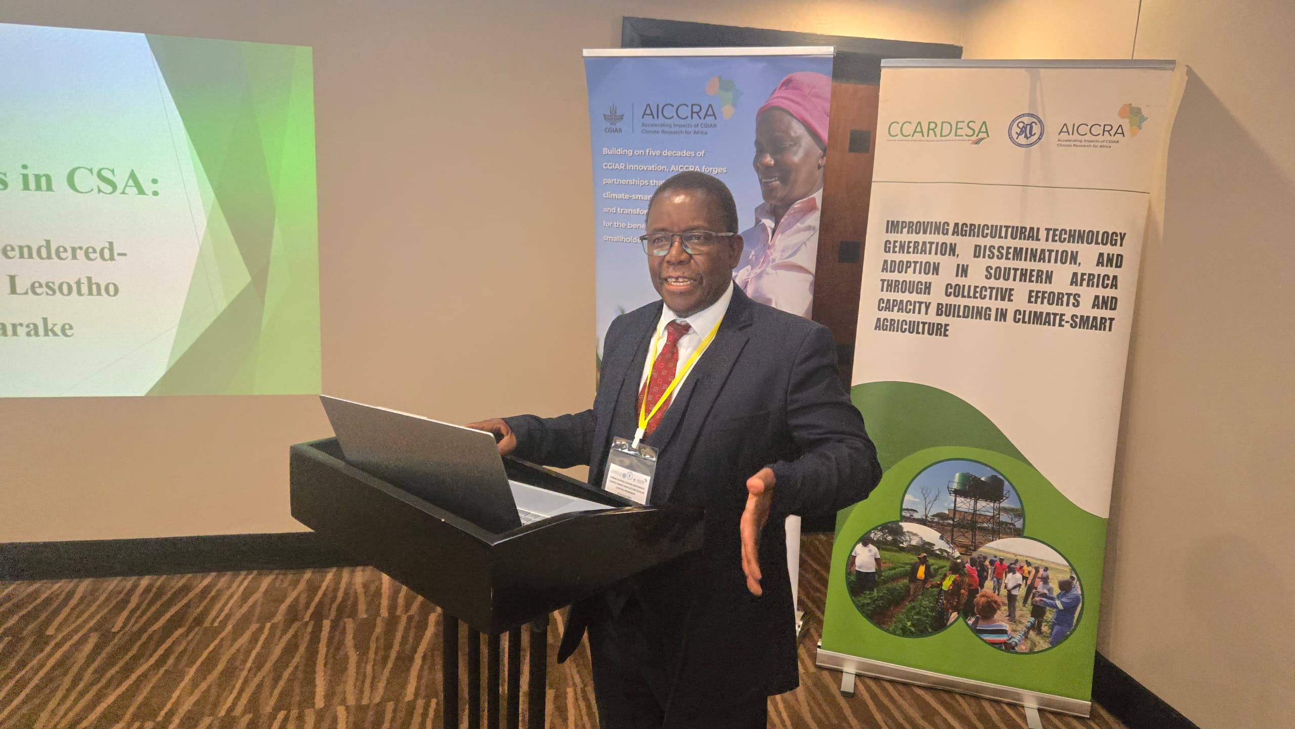 Speaking on behalf of the Executive Director, Prof. Cliff Dlamini, Ms. Futhi Magagula, Special Projects Coordinator and the AICCRA Coordinator, started her remarks with a powerful message. “The SADC region is highly vulnerable to climate risks, cyclones, droughts, floods, and rising temperatures, which threaten its food systems, rural livelihoods, and aggravate existing inequalities. CSA offers a pathway to resilience, but it must be gender-responsive and inclusive.” She emphasized the importance of women in agriculture, the barriers they face, and the need to integrate indigenous and gender perspectives in CSA strategies. She called for joint efforts by governments, NGOs, researchers, and partners to build a climate-resilient future for all. CCARDESA extends its gratitude to the Ministry of Agriculture and Food Security, Lesotho, FANRPAN, AICCRA, the World Bank, and all participants for their collaboration and commitment.
