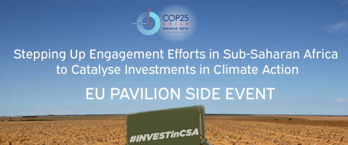 Prominent speakers from the region will try to secure investment in climate-smart agriculture tomorrow at a joint side event at COP 25 in Madrid on 6th December 2019. An innovative theatre play for policy advocacy will be featured, followed by concrete evidence-based investment pitches and response speeches by global players. You find details and regular updates on the event here.